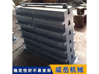 铸铁地轨的材质为强度铸铁HT200-300,工作面硬度为HB170-240,经过两次人工处理(人工退火600度-700度和自然时效2-3年)使该产品的精度稳定,耐磨性能好。可根据需方图纸制作或双方商定生产加工。