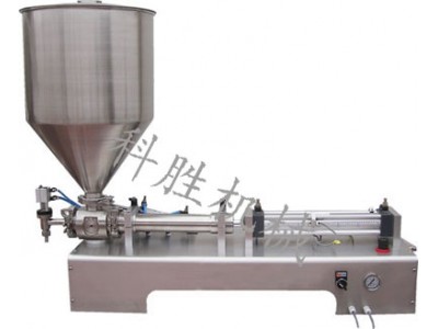 对粘度流体进行灌装的设备。该机为半自动活塞式膏体灌装机。