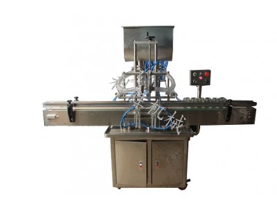 性能特点:1、电器气动元件,故障率低,稳定可靠, 2、与物料接触为不锈钢,拆装简单,易清洗,符合食品卫生要求;3、灌装量和灌装速度可调整,设置无瓶不灌装,自动加料;4、不需更换零件,即可调整更换不同规格的瓶子,适用性强;5、灌装嘴设有防滴漏装置,确保灌装无拉丝、不滴漏。
