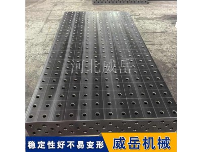 基准孔+定点芯轴技术:平台台面预设高精度基准孔(精度H7级),工件对应位置设计定点孔,焊接时只需将工件定点孔套入平台定点芯轴,即可实现自动找正,横向、纵向偏差≤±0.05mm。焊接挖掘机斗杆时,传统方式需调整3-5次才能控制错边量≤1.5mm,用平台直接套芯轴,错边量稳定≤0.8mm;
