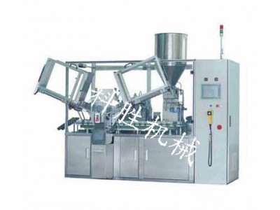 RGDF-160B全自动灌装封尾机,是一种对软管或复合管灌装膏状 物料并进行封尾的自动化程度的设备。符合GMP标准的不锈钢计量泵,设有螺杆微调机构,采用光电识别,变频器调速,是折边封尾机。