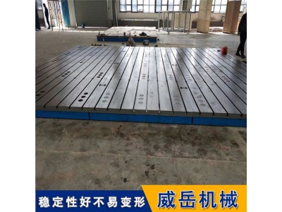 铸铁装配平台的材质为强度铸铁HT200-250,工作面硬度为HB170-240,经过两次人工处理(人工退火600度-700度和自然时效2-3年)对铸铁平台,铸铁平板进行热处理的目的是减少铸件中的应力,铸铁平板的部分白口组织,提高铸铁平台工作表面的硬度和抗磨性,使铸铁平台的精度稳定,抗磨性能好,回过火的铸件也能很好的加工。