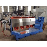 塑料挤出机是热喂料挤出机。它喂入的胶料要求要经过热炼,且供料均匀、稳定、等速,料温保持在50~70℃。其螺杆短,螺纹沟深,均化效果不理想。从20世纪70年代起。一度出现长径比变小的现象。由于热喂料挤出机可连续挤出、操作简单、生产速率不错、挤出成品形状稳定,在很多制品的生产工艺中,仍然采用热喂料挤出机。在轮胎生产中用于各种胎面、各种型胶的挤出以及在胶管、电缆及其它塑料制品的生产中用于包胶及胶坯的挤出。