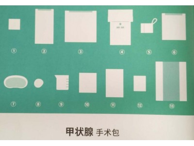 手术包配置:擦手巾(40*40cm)2块、头单1条、脚单1条、甲状腺单1条、腹部垫1条边单2条、弯盘1个、纱布棉球10个、量杯(100ml)2个、一次性使用治疗巾1条、手术单1条、一次性使用纱布垫2条、一次性使用包布1条