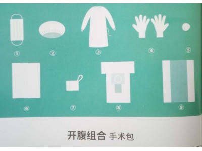 手术包配置:一次性使用医用口罩5个、一次性使用帽5个、医用一次性防护服5件条、手套5双、医用棉球10个、医用垫单2条、腹部垫单(30*30cm)10条、剖腹产单(180/245*260cm)1条、一次性使用包布1条。