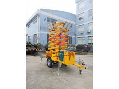 应用场合:本工具拖车用于市政维修,码头、物流中心货物运输,建筑装潢等,加上平板拖车底盘能牵引行走,工作高度场地也有所改变,具有重量轻、可移动、操作简单、作业面大,能跨越障碍进行高空作等特点。