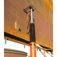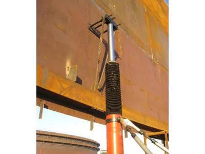 液压顶升设备支架总成施工方法有以下六种:液压提升倒装、中心柱倒装,充气顶升倒装、水浮倒装、正装法、机械顶升倒装。在先期施工的罐底板上安装数个固定垫墩 (400mm 高 , 间距 3-4 米 ), 然后组装 层壁板和顶盖板 , 沿罐内壁 400mm 处均布数台(根据计算确定)液压提升机,以提升机的滑动托架托住固定在罐内壁的胀圈下部 , 操纵液压提升机的控制柜,集中控制各液压机的动作.