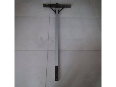 其结构由尺身、标度尺及尺身上的游框组成,尺身为双工形型材结构,呈方管形,在型材上下两边外沿带有向外延伸,在外沿内侧开有槽口,将其不锈钢标度尺插入在槽口内,然后在其端头用销钉固定,尺身中间装有游框,游框上固定有副尺,侧板,侧板上固定有调整螺栓,尺身端头装有十字板和测头,整个支距尺呈丁字形结构。