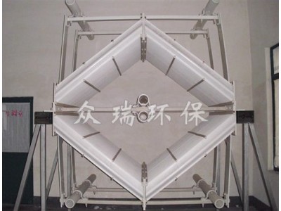 2、除雾器本体由除雾器叶片、卡箍、夹具和支架等结构组成。其作用是收集烟气中的水滴和少量粉尘,减少烟气中的水分携带,防止风机振动。