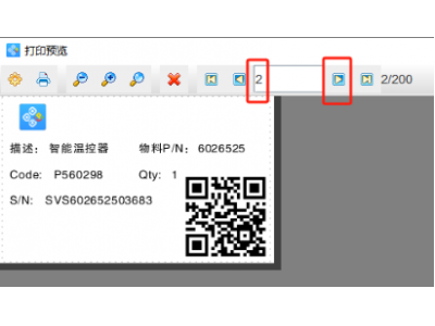 4. 制作完成之后,点击软件顶部的“打印”按钮,在打开的打印设置窗口中设置数据量(标签的总个数)、开始页码(从那一页开始打印)、结束页码(到那一页结束打印),然后点击下面的“预览”按钮,翻页查看批量生成的产品铭牌标签,预览无误就可以直接连接打印机打印出来或者批量输出PDF文档了。
