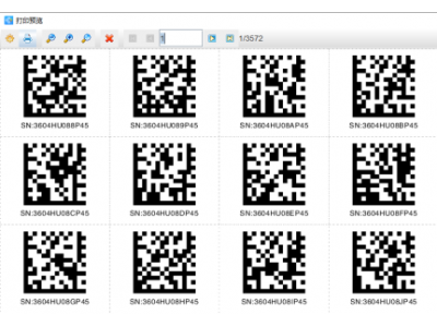 4. 制作完成之后,点击软件顶部的“打印”按钮,在打开的窗口中设置数据量(标签的总个数)、开始页码(从那一页开始打印)、结束页码(到那一页结束打印),然后点击下面的“预览”按钮,翻页查看批量生成的流水SN码,预览无误就可以直接连接打印机打印出来或者批量输出PDF文档了。