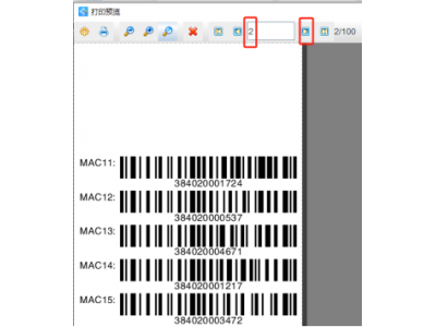 7. 设置完成之后,点击软件顶部的“打印预览”按钮,翻页查看批量生成的条形码标签,预览无误就可以直接连接打印机打印出来或者批量输出PDF文档了。