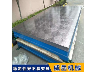 铸铁平台设备前的根底施工一般包含进程:根底洞的修补、装设模板、钢筋的处置、设备地脚轨和孔模板的设置、尤其要保证灌溉的水平。对根底的质量进行严厉的查看保证其质量。一般需求将混凝土强度到达70以上,铸铁平台设备才答应设备。一般小的设备根底可用钢球撞痕法测定相关的强度。